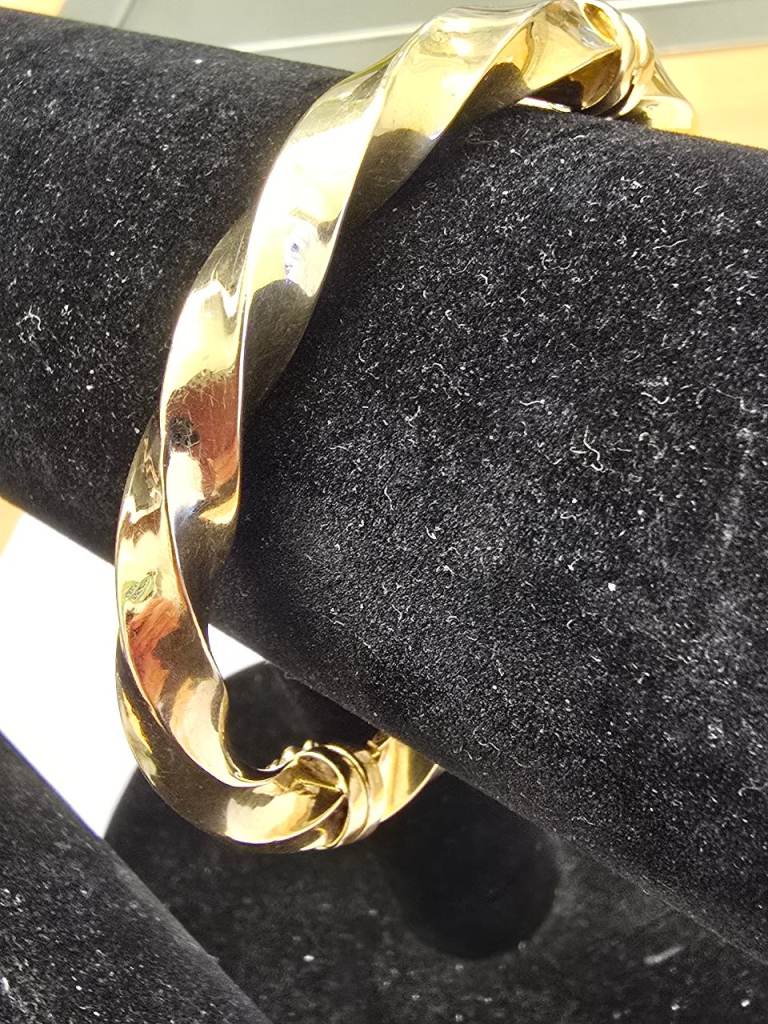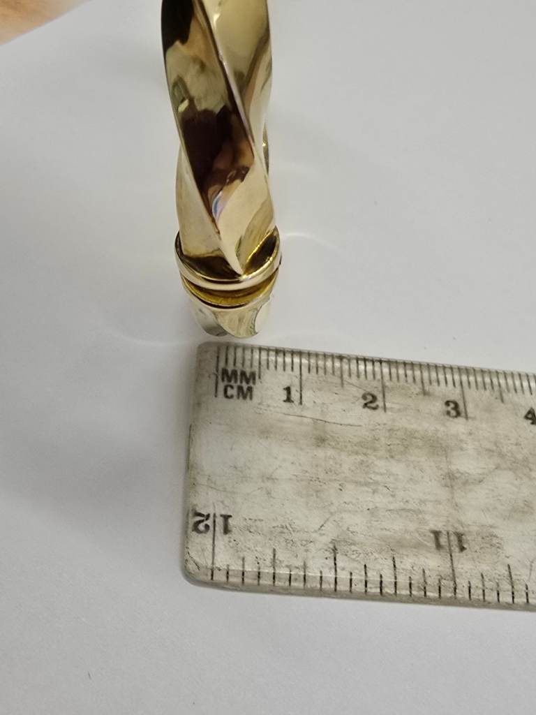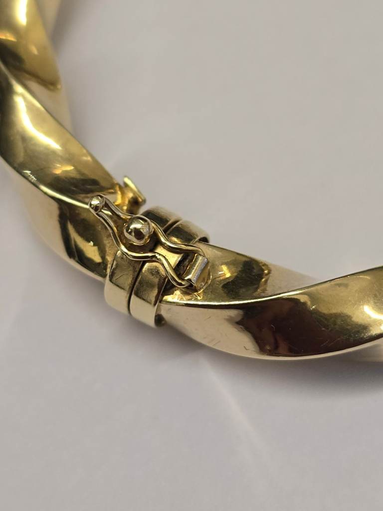 9CT GOLD LARGE TWISTED HINGED BANGLE WITH FLIP OVER LOCKING CLASP