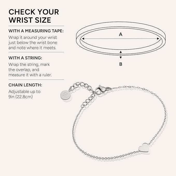 Abbott Lyon Mini Heart Bracelet with Adjustable Chain | Polished Stainless Steel - gift boxed ready for gifting