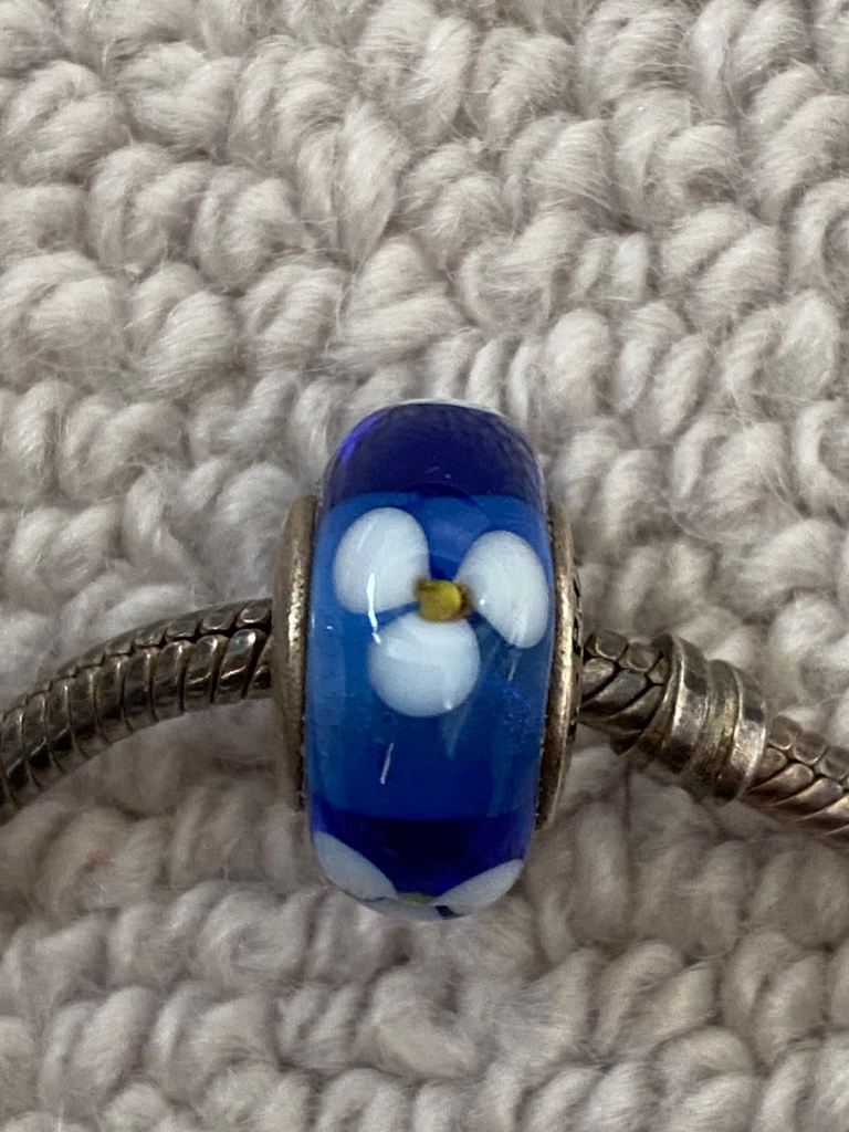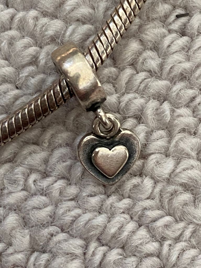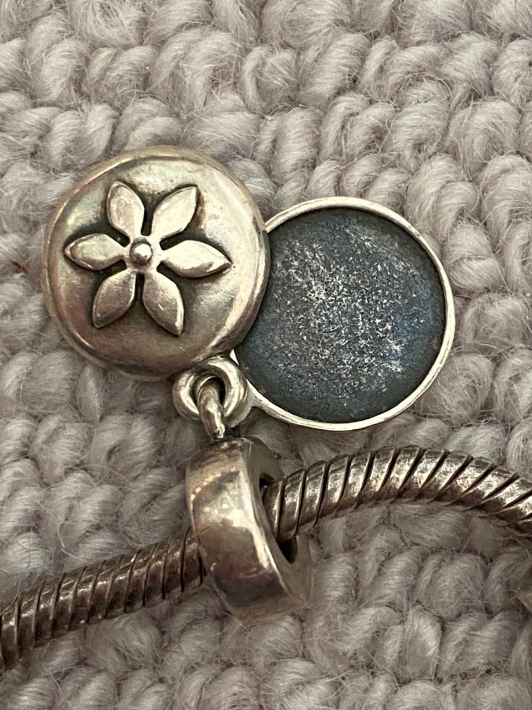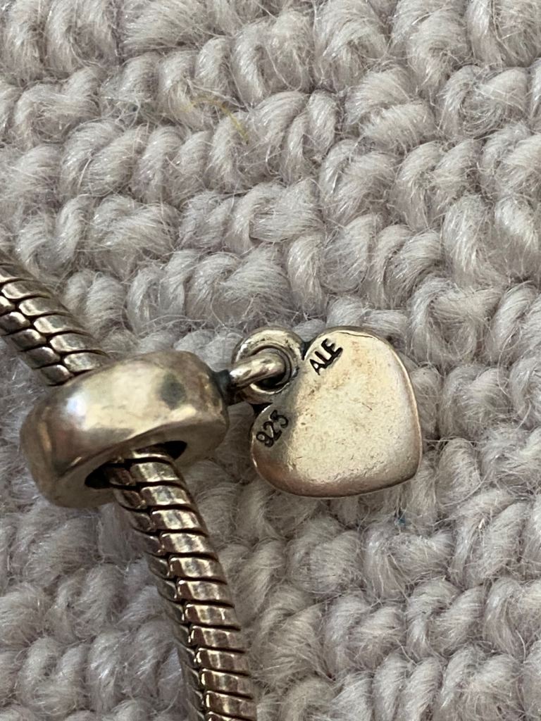 Sterling silver Pandora bracelet with 4 charms. Only worn a few times but I’ve had it a long time and it could do with a quick clean with silver cut.
