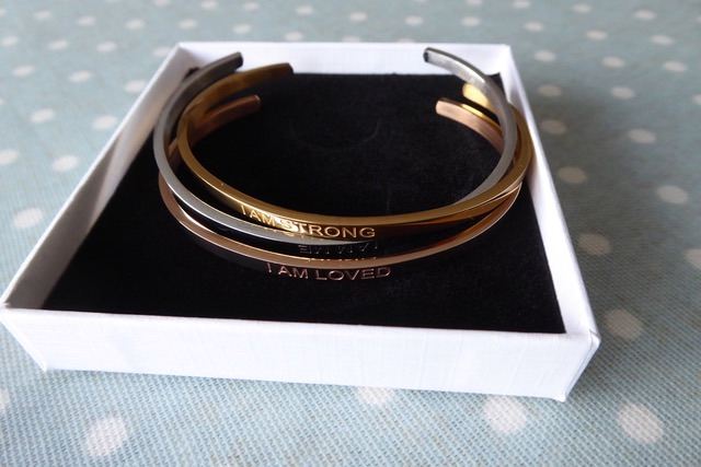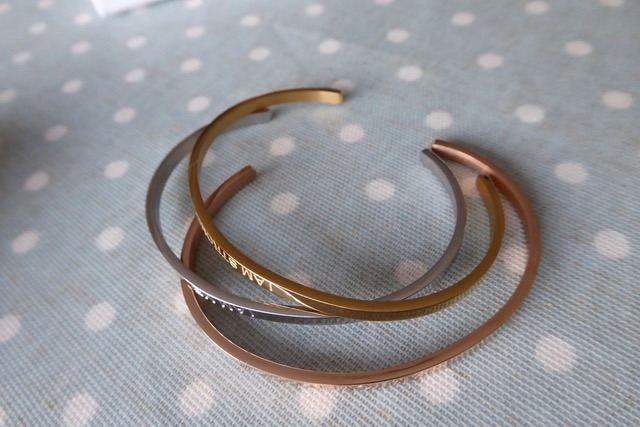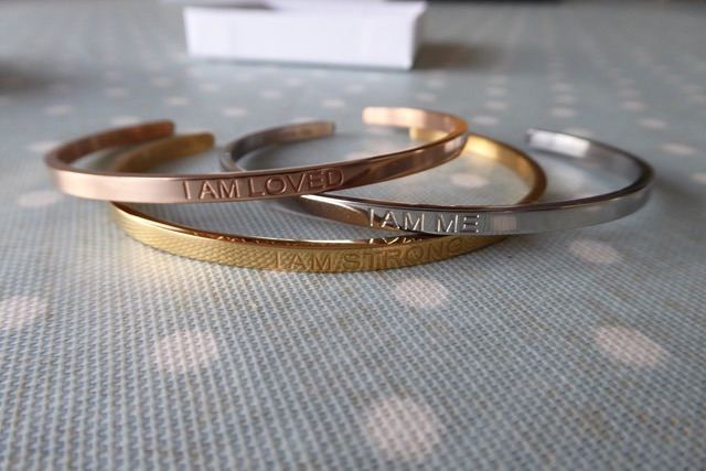 Set includes: 1x gold bangle – ‘I am strong’ 1x silver bangle – ‘I am me’ 1x rose gold bangle – ‘I am loved’