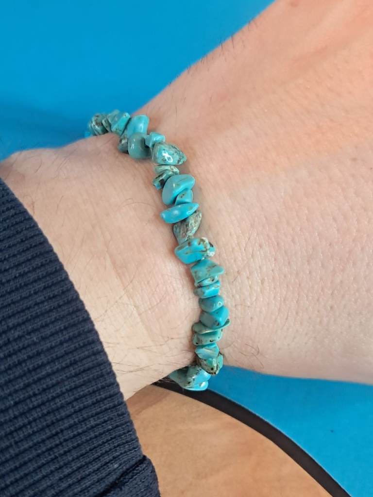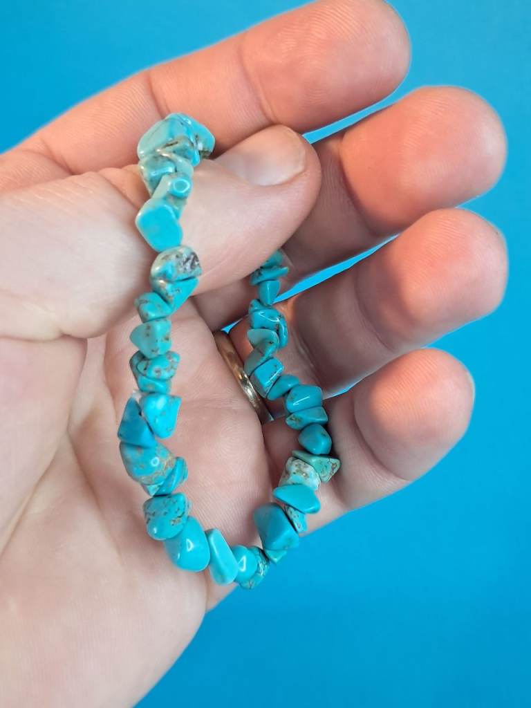 This is a turquoise chip stone stretch bracelet.