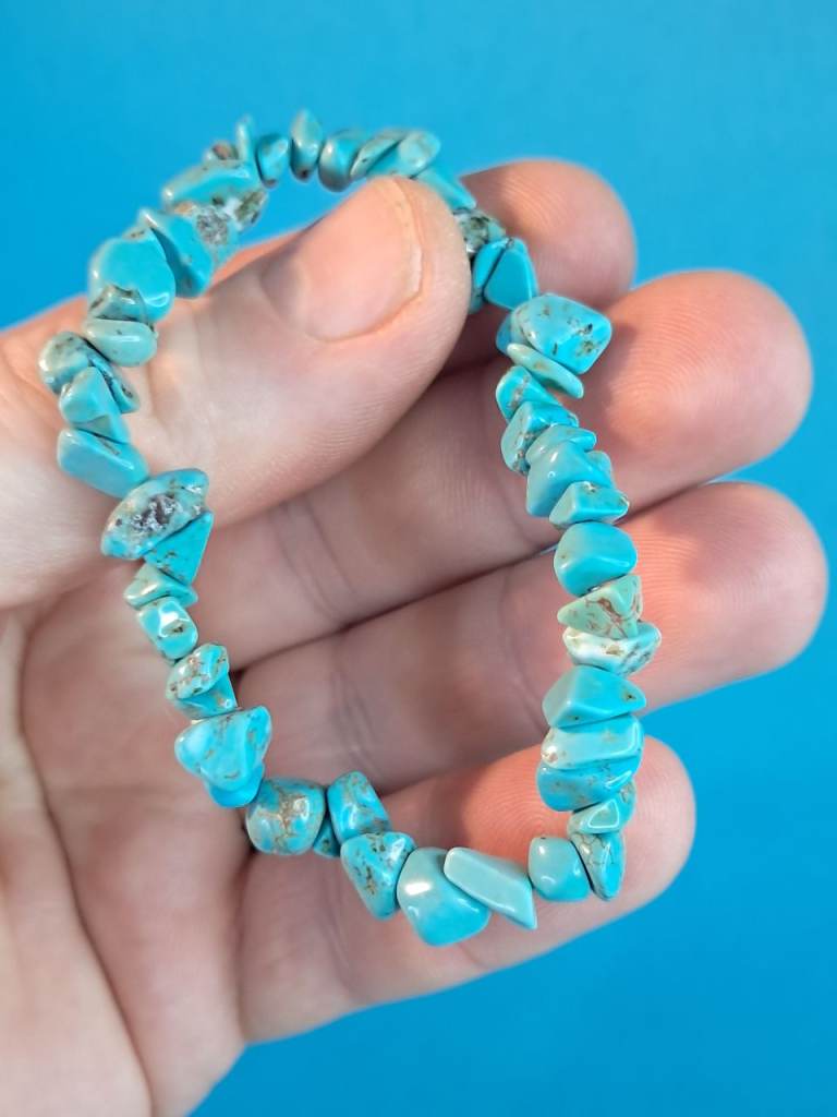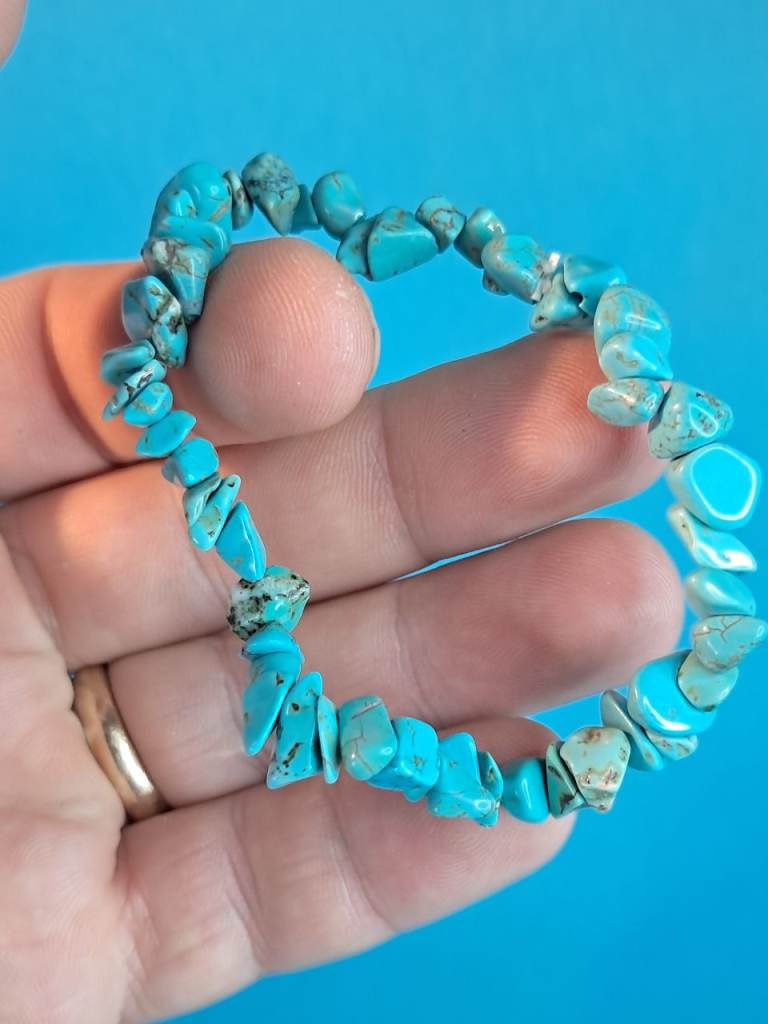 This is a blue 💙 colour turquoise chip stone stretch bracelet