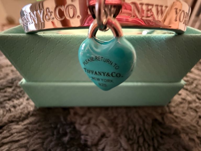 Posting for under a monthTiffany & Co bangle with enamel turquoise heart