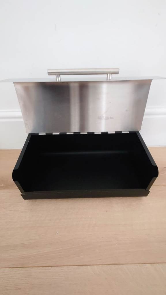 Black & Steel Bread Bin. Brand New. Dimensions 36cm(l) x 20cm (d) x 14cm (h)
