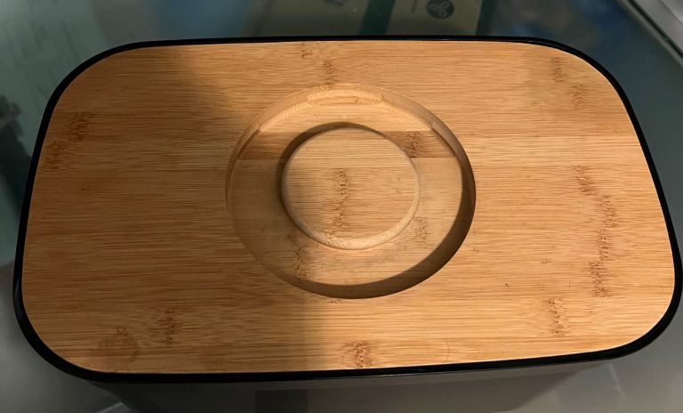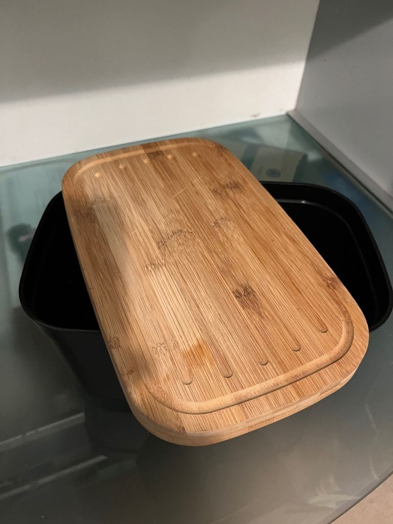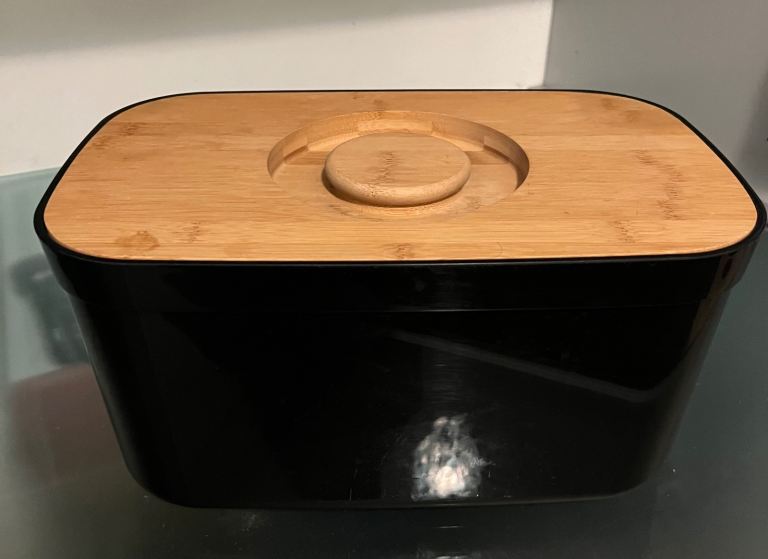 I'm selling a Joseph Joseph bread bin featuring a bamboo cutting board lid.