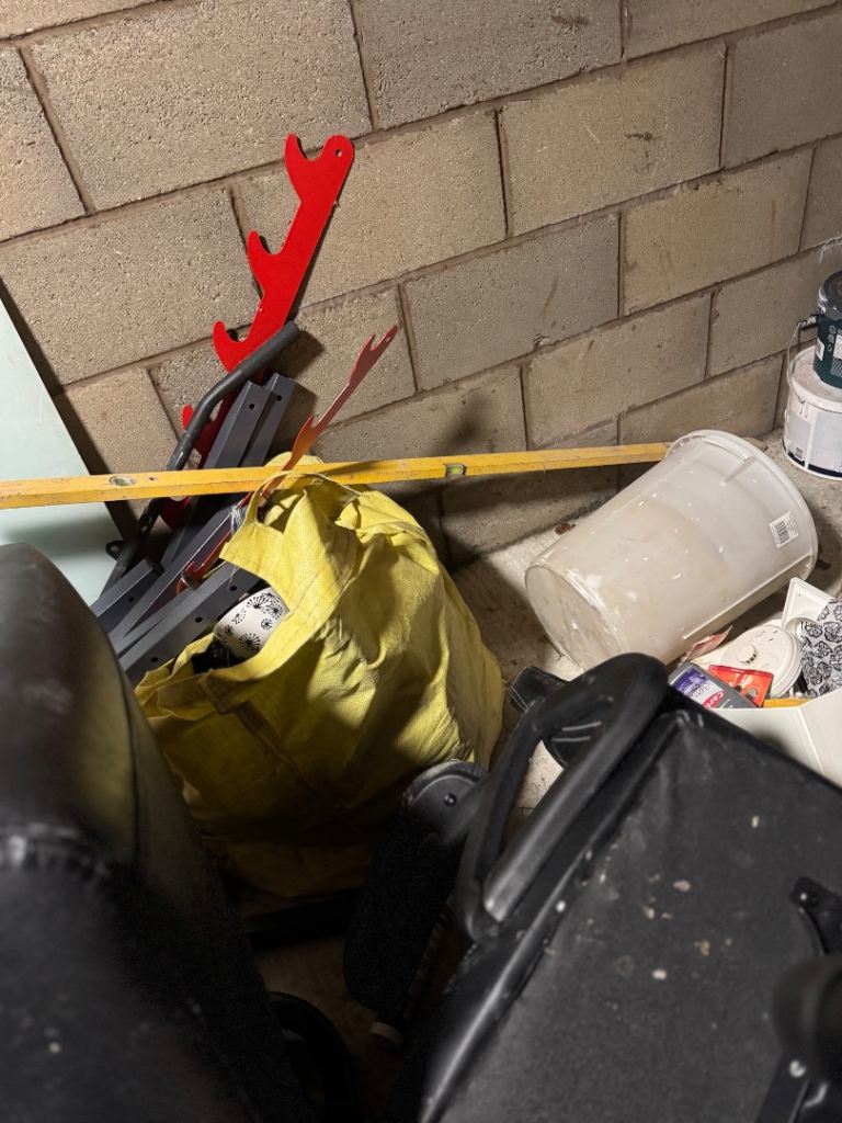 I have a garage with lots of bricklaying tools including a cement mixer, large concrete wheel barrow all good condition . Large spirit level large lintel pieces of wood .
