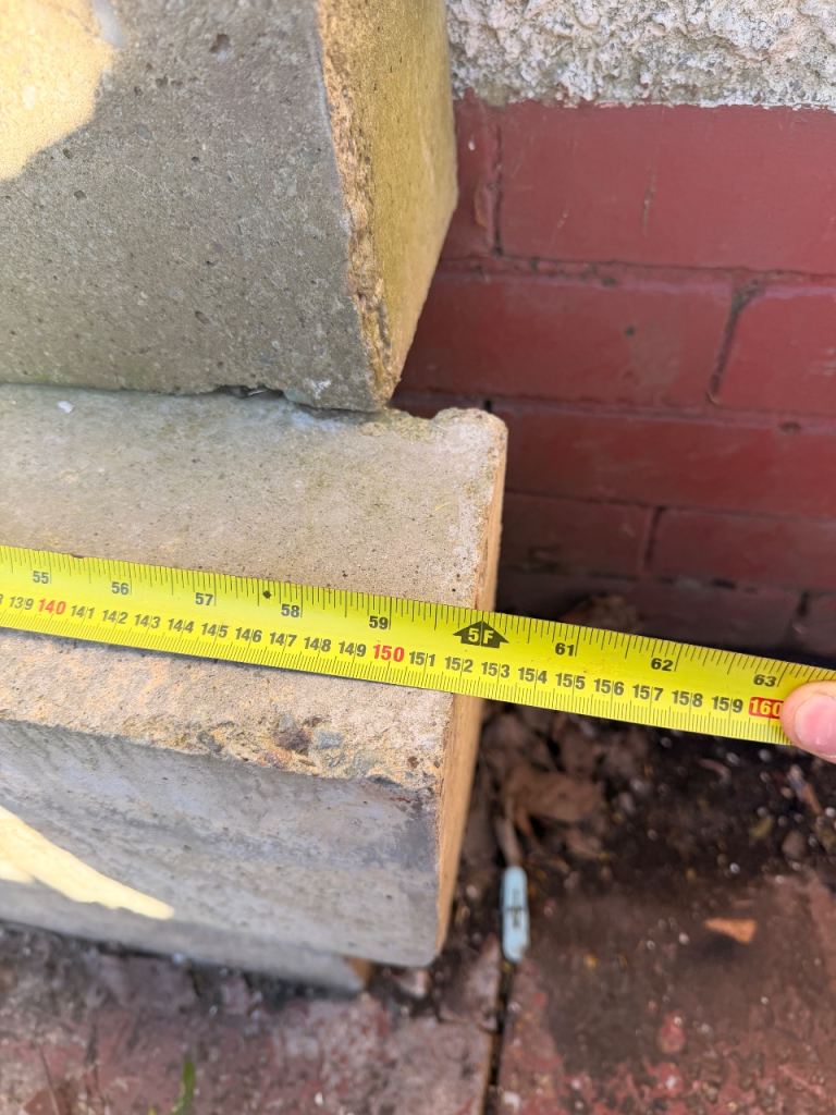 I have 5x concrete lintels for collection for free. They are 1520mmx 140mmx 210mm.