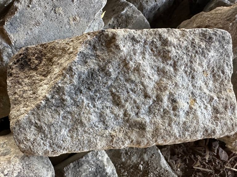 A good pile of reclaimed grey stone blocks, perfect for various landscaping or construction projects.