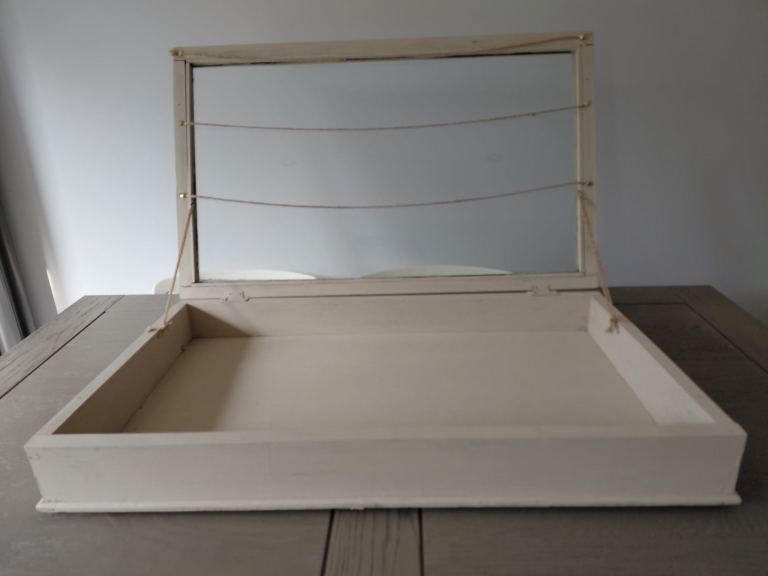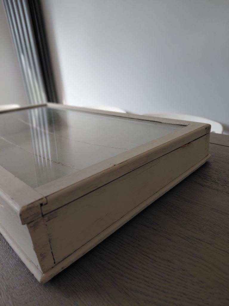Glass lidded wooden painted display case
