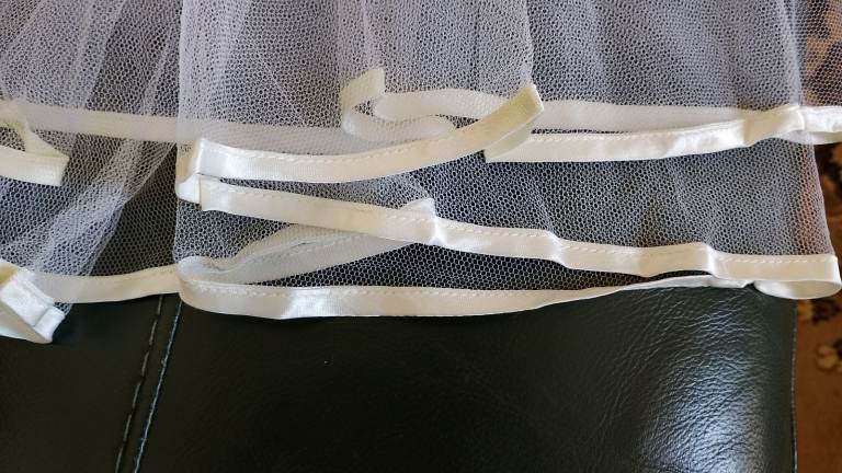 Double length. Soft tulle. Plain with satin ribbon edge. 80cm (34ins) length. Very little whole near the edge hence the very low price.
