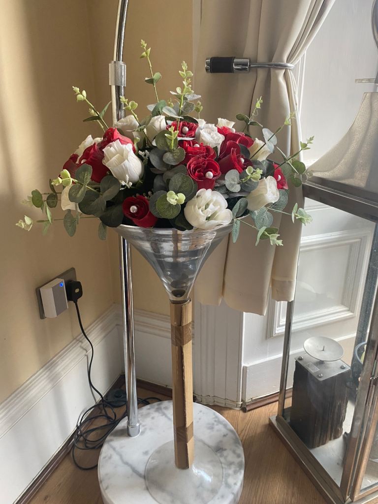 Wedding/special occasion table vase with artificial red/white flower arrangement, beautiful condition for wedding or special occasion venue is as new smoke and pet free home, only have one available!