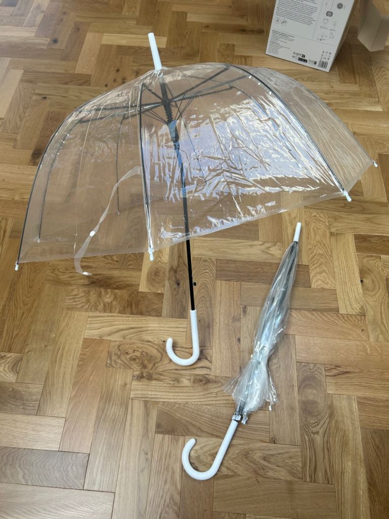 2 x clear umbrellas
