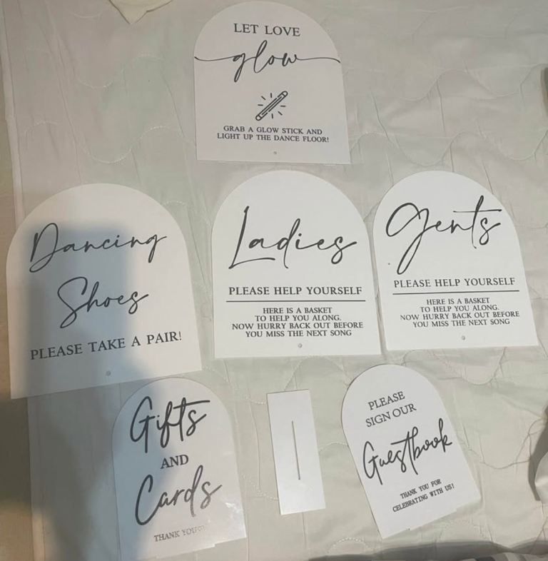 Wedding bundle table advice runners items flip flops umbrellas signs table decorations bride
