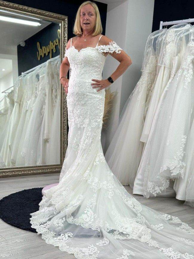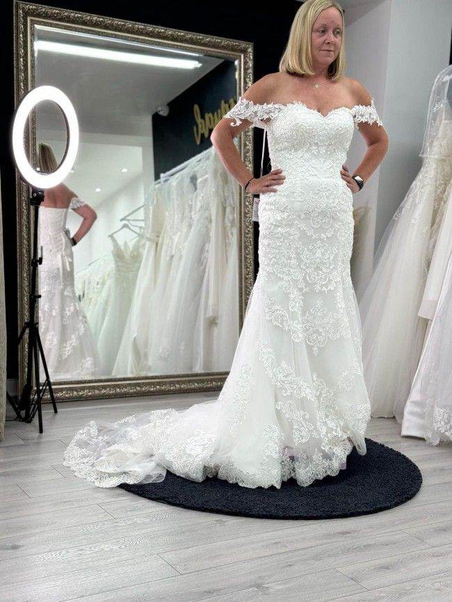 Ivory lace dress. Size 10. Never been worn so had no alterations Was bought from Brise in the city in Glasgow but bride changed her mind and bought a different dress. Cost 1200 new. Open to offers