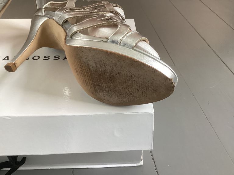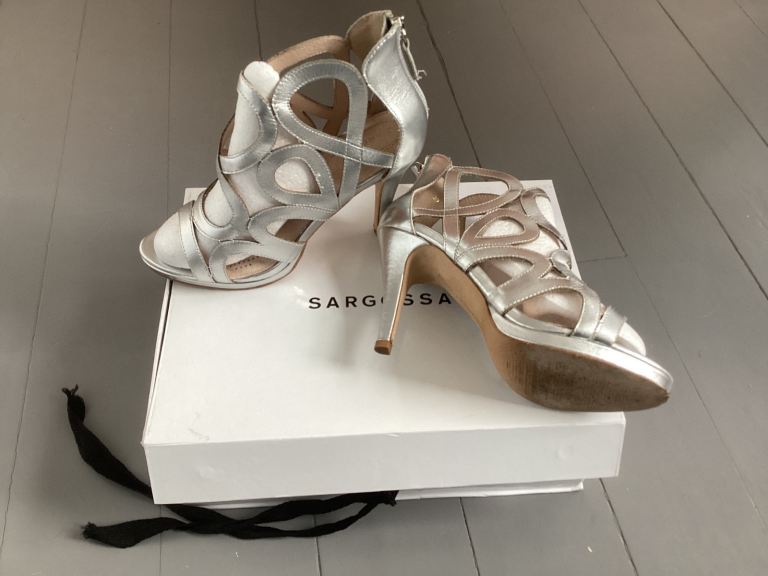 Lovely pair of Sargossa Redefined dress shoes in silver/nappa Size 5 UK/39 EU. Only lightly used, little wear, in original box with spare set of heel tips. These cost around £200 new, so they are a bargain at just £25. Available for uplift in Kippen, 10m west of Stirling, or can deliver for around £5.