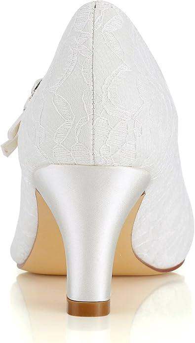 Emily Bridal Women's Wedding Shoes Closed Toe 2.56 Inches Chunky Heel Lace Satin Pumps with Buckle Bridal Shoes (EU36/UK3.5, Ivory)