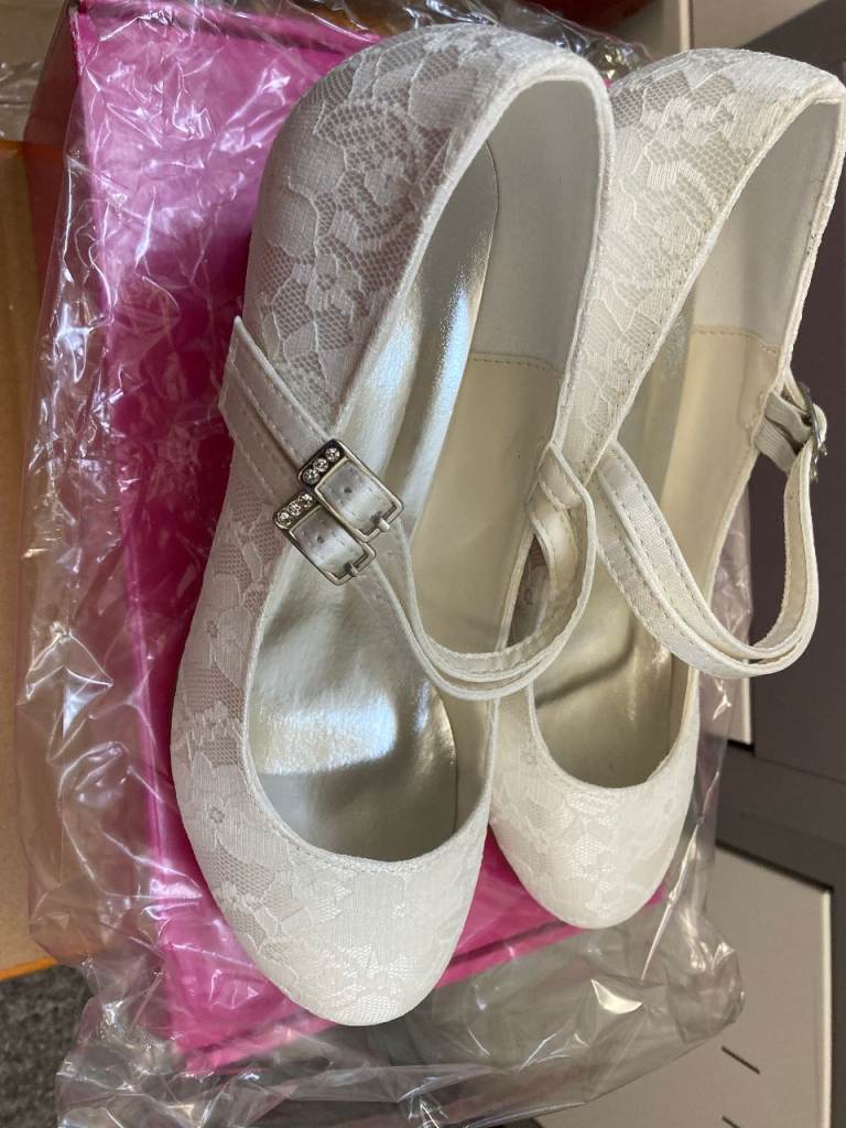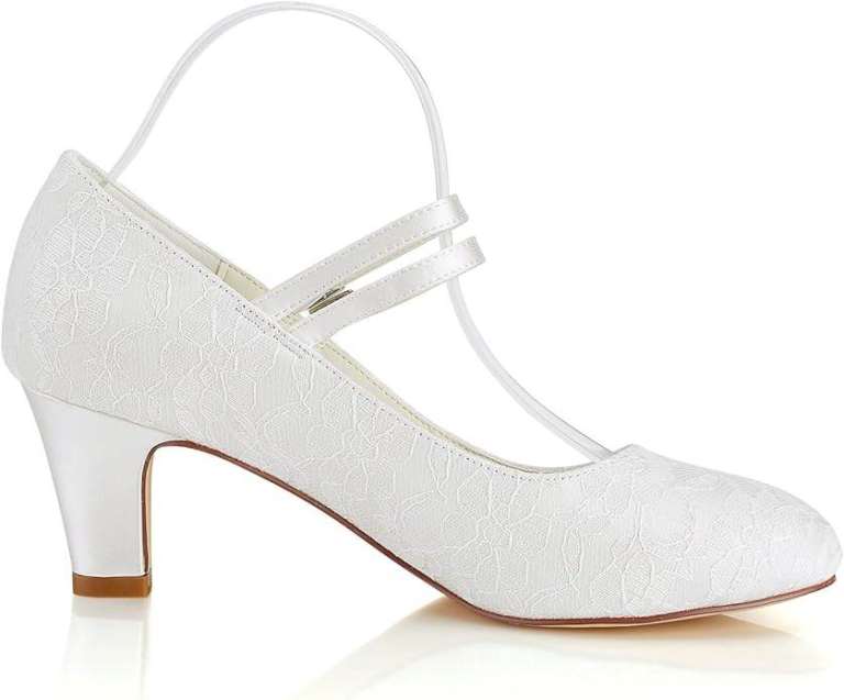 Women's Wedding Shoes Lace Satin Bridal Shoes (EU36/UK3.5, Ivory)