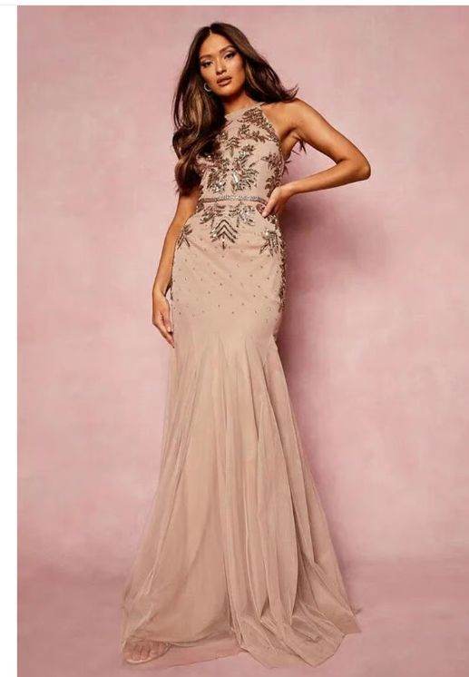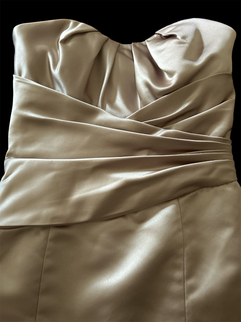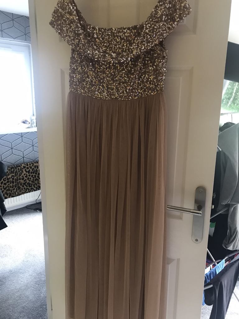 Belsoie Gold Satin Bridesmaid Maid Of Honour Dress Size 12 Dry Cleaned In VGC