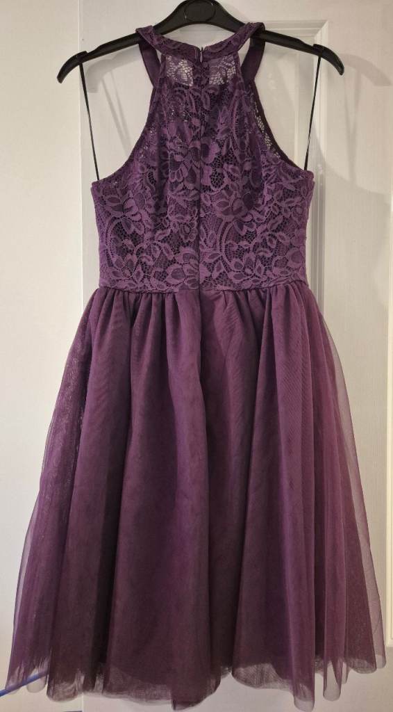 Size 6/8 womens purple lace and Chiffon knee length halter dress