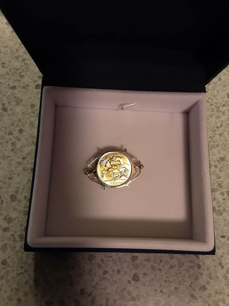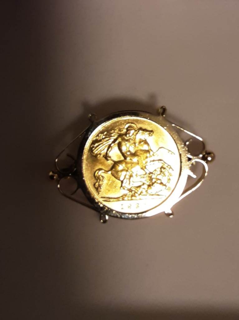 Posting for 8+ years9ct brooch with a 22ct 1/2 sovereign 1926
