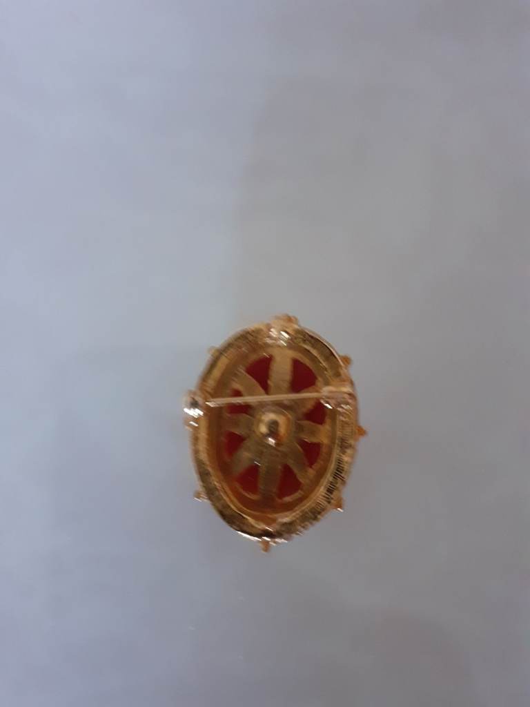 Cameo brooch with gold effect surround.