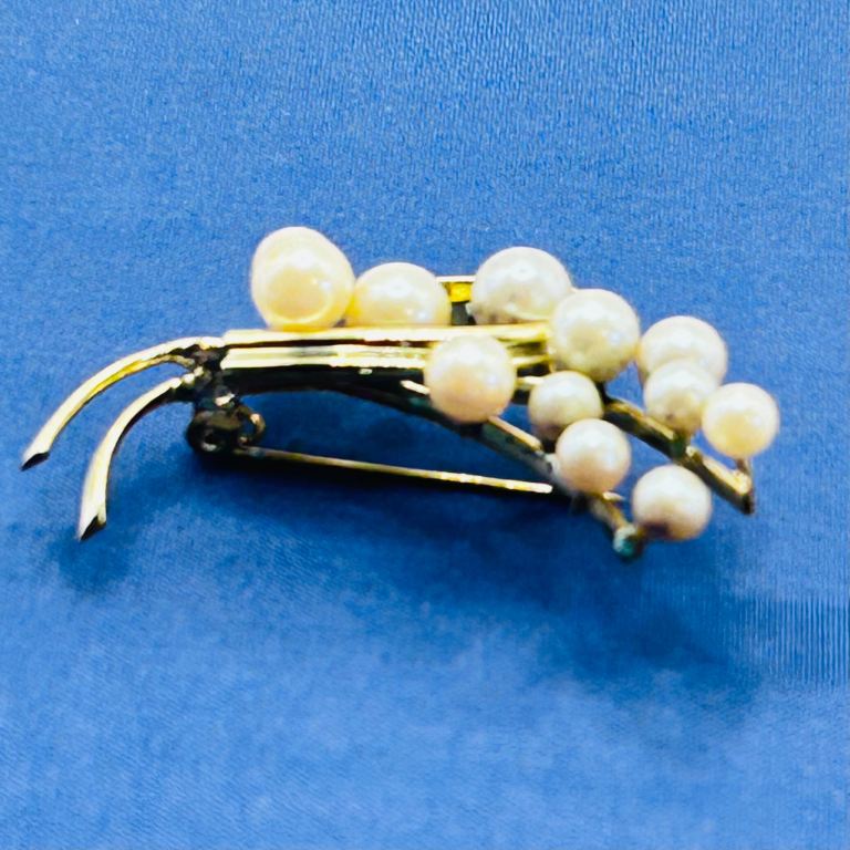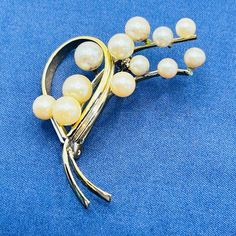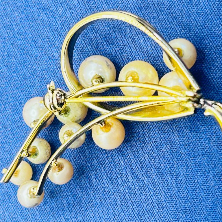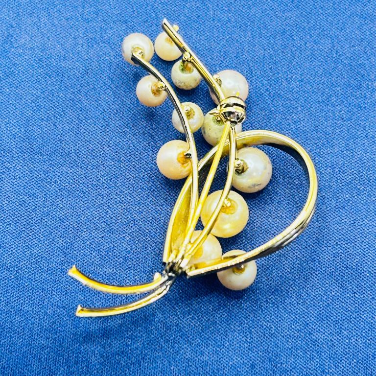 Vintage Gold‑Tone Faux Pearl Spray Botanical Brooch with RollOver Safety Clasp