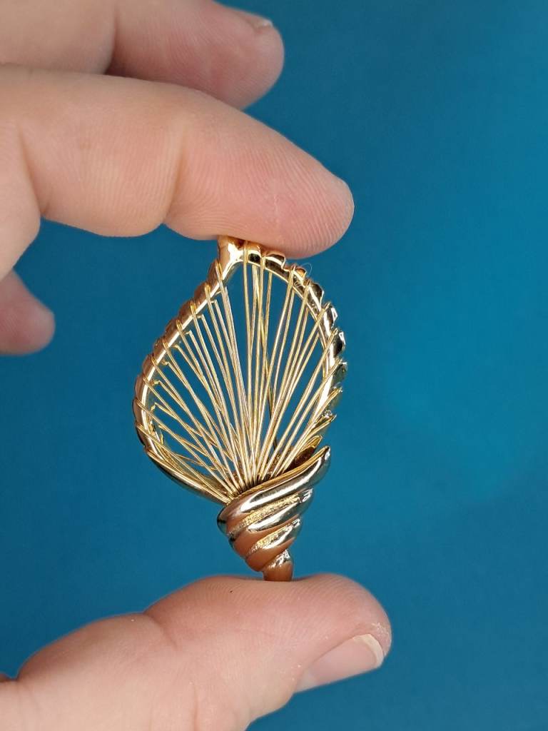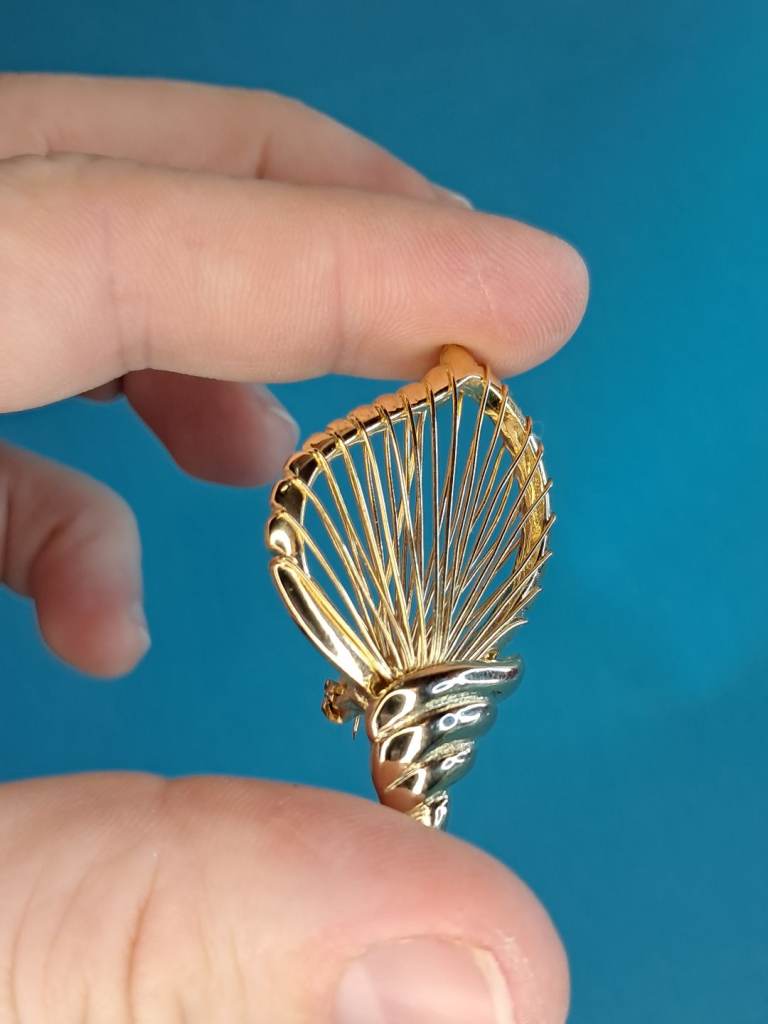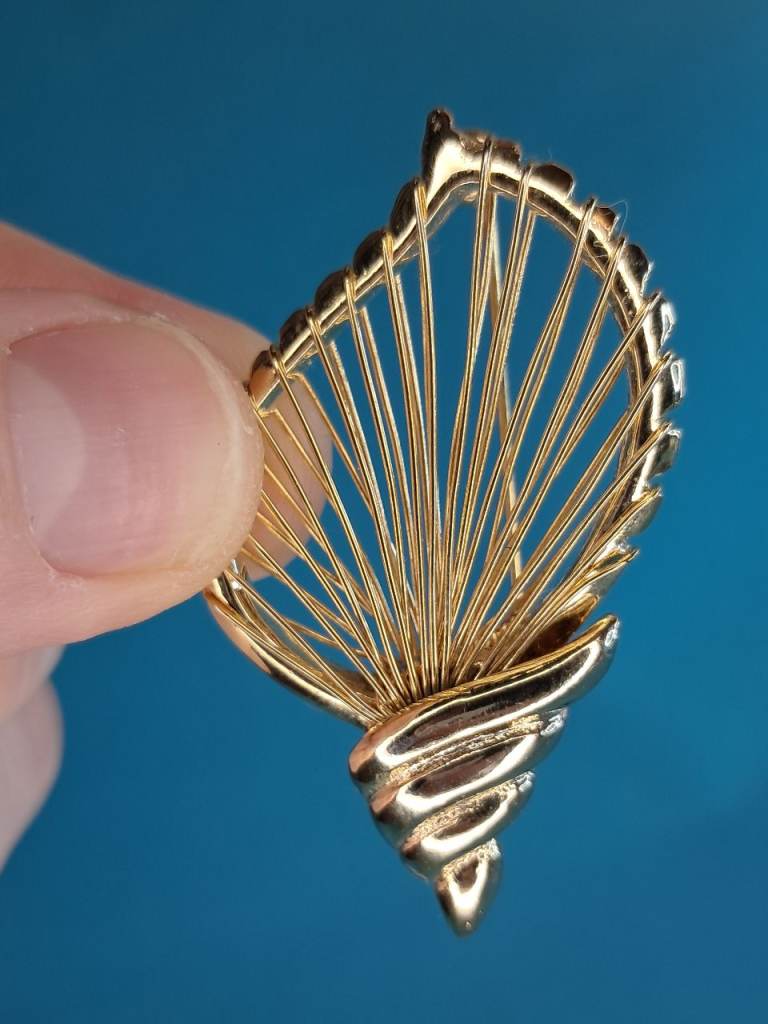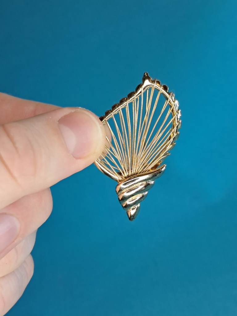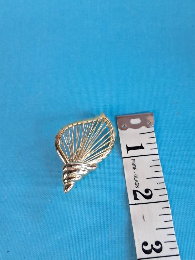 Vintage Gold Tone Wire Shell Brooch Mid Century Coastal Chic Beach.