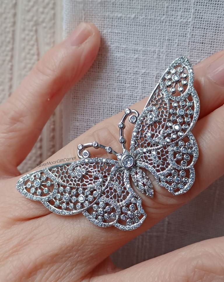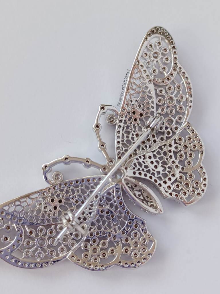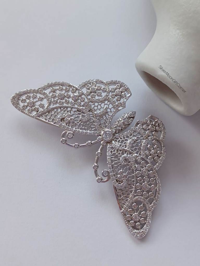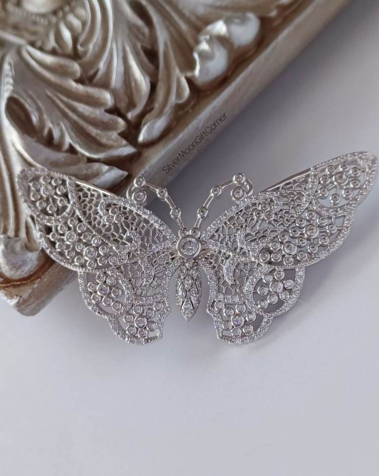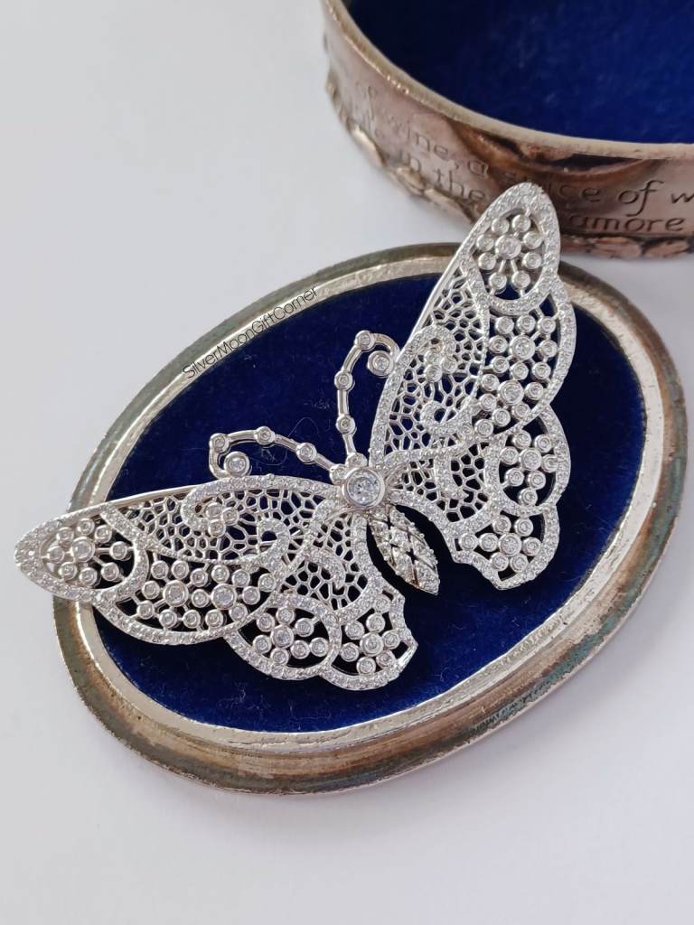 ✨ Platinum Plated Sterling Silver Hallmarked Vintage Victorian-Style EJI Branded Sparkling Large Butterfly Brooch – Elegant Luxury Jewellery for Women ✨
