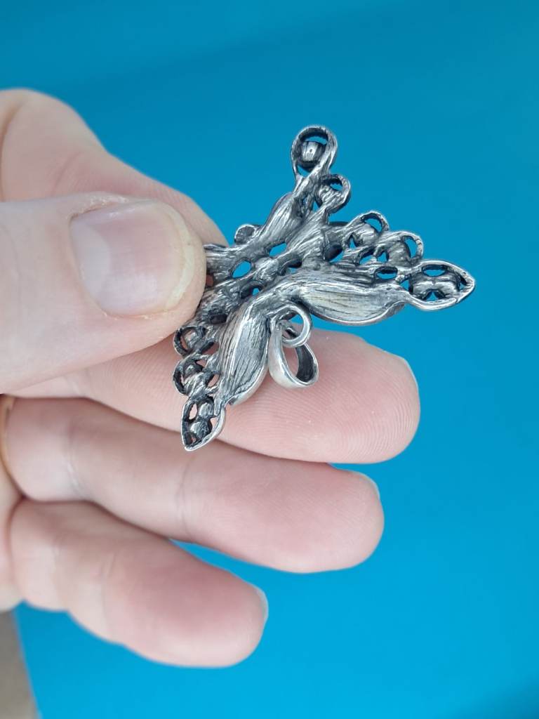 Vintage-style butterfly pendant with purple and iridescent crystal rhinestones and a metal alloy....
