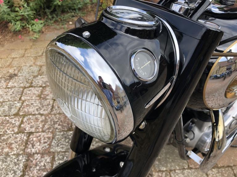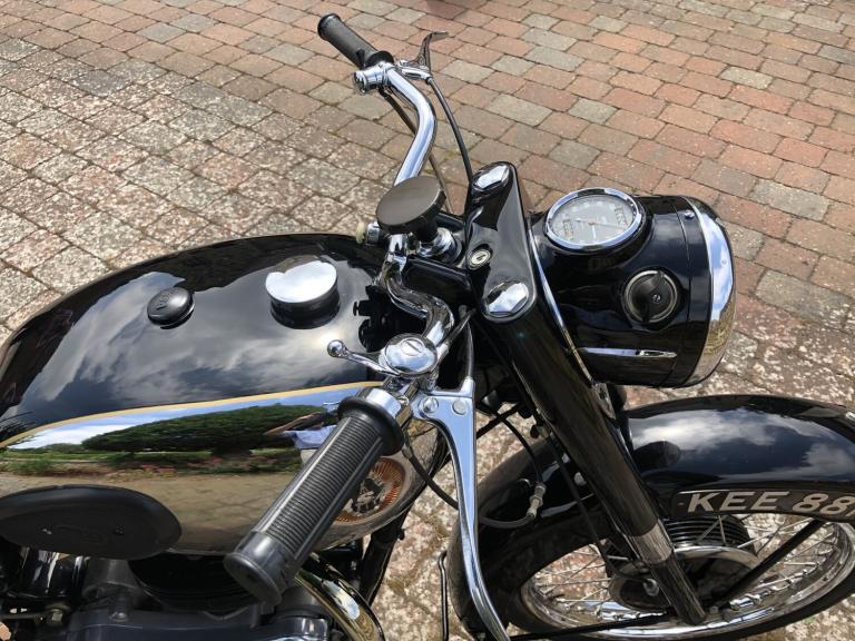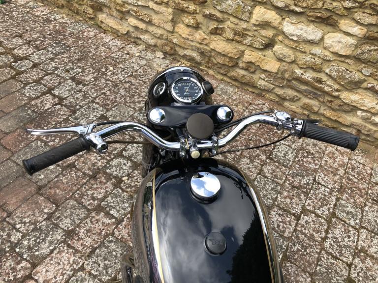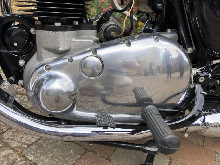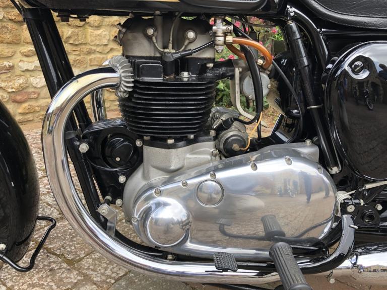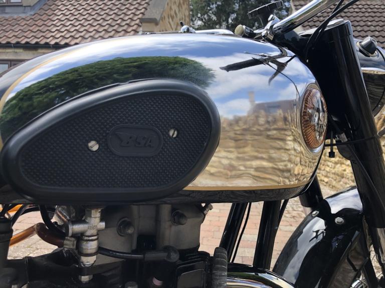 We are really pleased to offer this immaculately presented Golden FlashOwned by the previous keeper for many years and was purchased with just a few miles on the clock from his friend, so known by him since newCurrently reading some 6,400 miles which we are informed is correct, although no documentation to back this up.The previous keeper over his many years of ownership has painstakingly dismantled the BSA and completely restored her using nearly all the original nuts, bolts, washers, etc.A very rare machine and unrepeatable originality.All matching numbersCurrent V5c RF60 logbook on filePart of a private collection and long-term ownership which now if to be used will require a light recommission and general serviceExport enquiries welcomed.