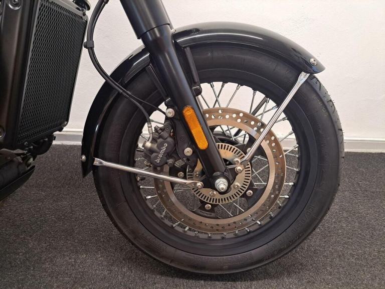 Front– Single 320mm floating disc, Brembo twin-piston floating calliper, ABS