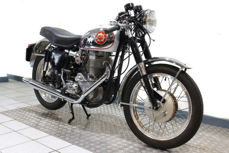 1954 BSA Goldstar CB34 500cc. We are selling this machine on behalf of oneof our regular customers. He is a lifelong Goldstar enthusiast and a club member. The bike has been rebuilt to an excellent standard. It is fitted with a Mikuni carb and a standard gearbox for practical purposes. The GP carb and RRT gearbox will be included in the sale. A well documented history comes with the bike. Please contact us for any further information.