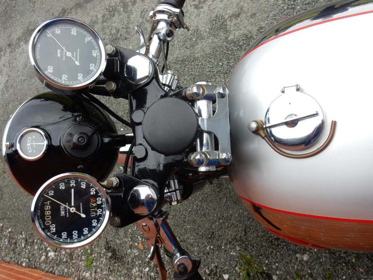 Rebuilt correct competition magneto. RRT2 Gearbox which has been rebuilt by Dr Rocket himself, lovely original seat and petrol tank which even has the brace on underneath, the wheels are CWC and have new spokes and have been freshly rebuilt. The engine is date stamped with the correct date. Toolbox and oil tank are original