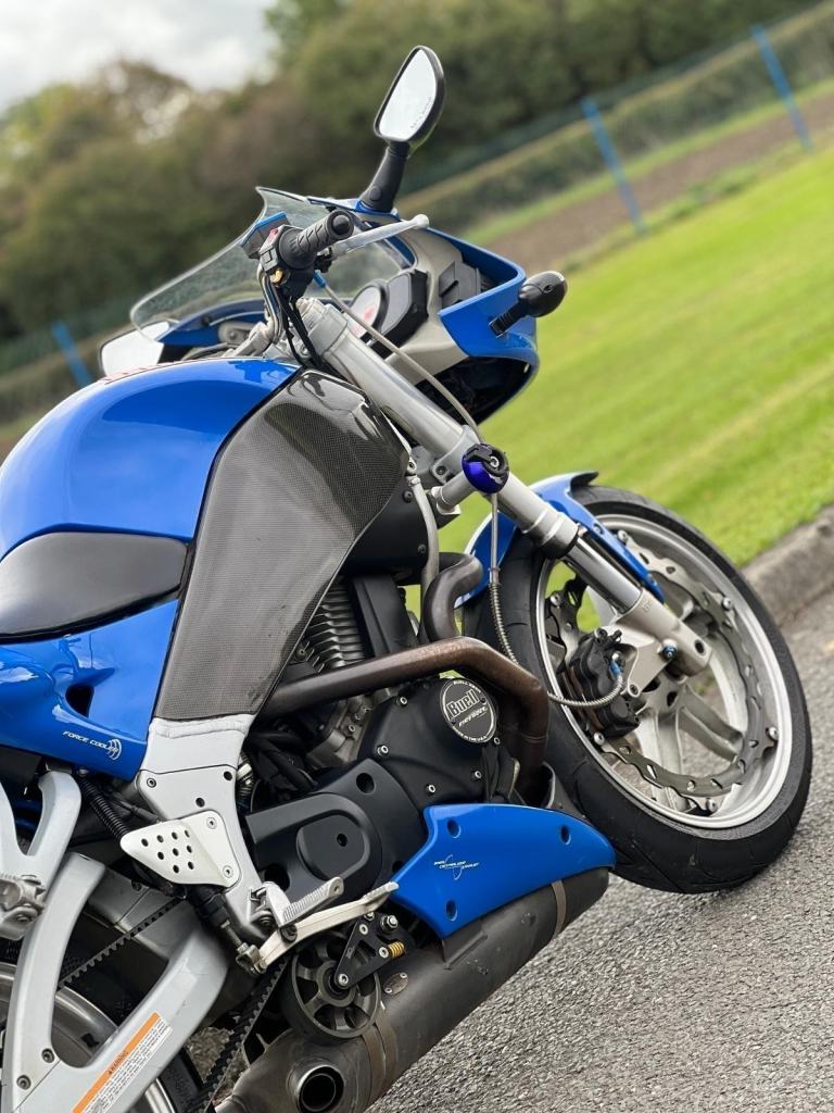 Buell has uniquely style and sharp-handling American sport bike known for its excellent chassis and innovative design, this is sought after motorcycle, if you are in market of something special than look no further. She comes with Long mot and private service receipts.