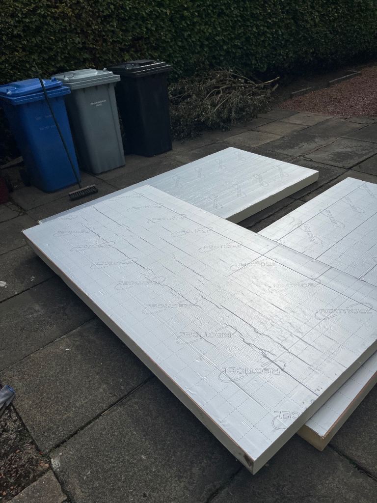3x 100mm thick rigid insulation boards (approx 2.4x1.2m)
