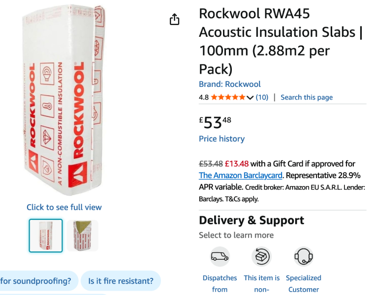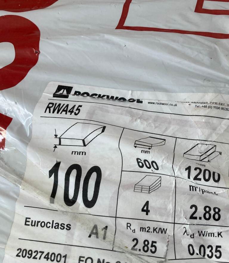 Unopened, unused, rockwool for insulation projects, including acoustic insulation (packaging slightly teared in places due to storage, but this doesn't affect the rockwool itself)