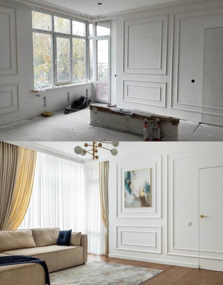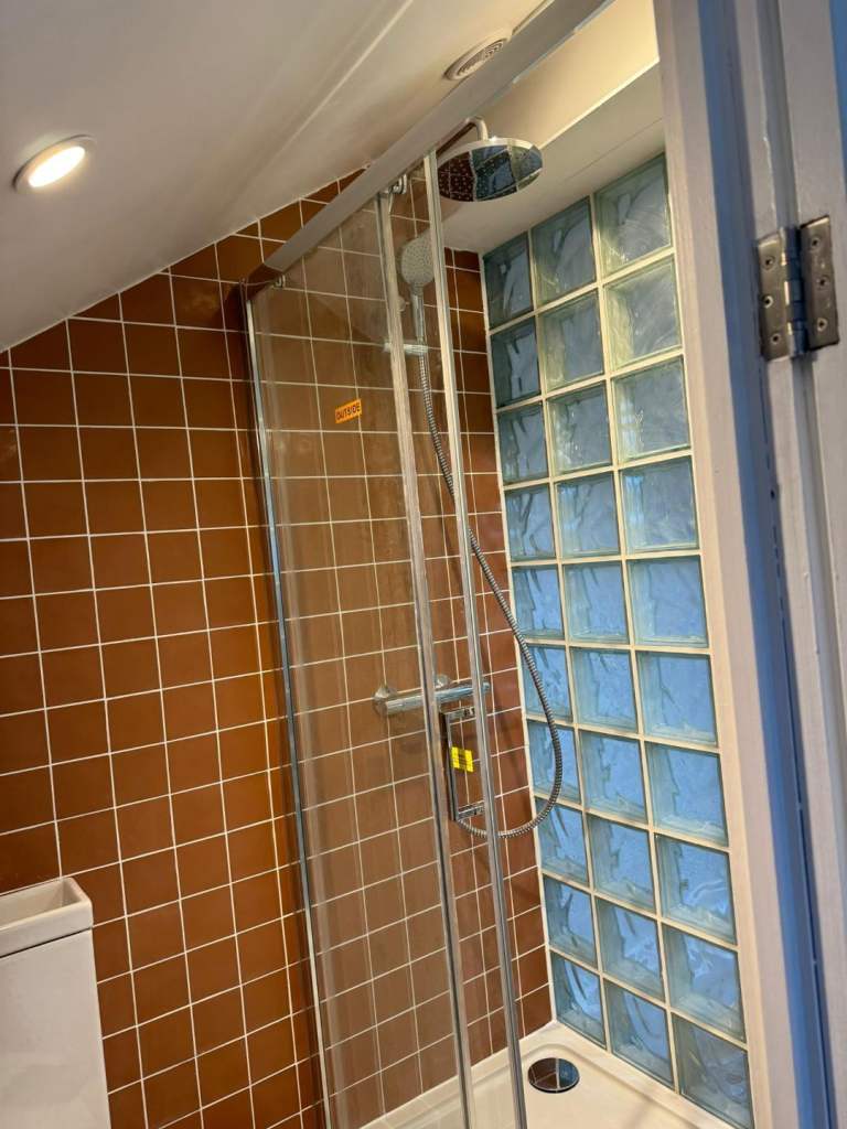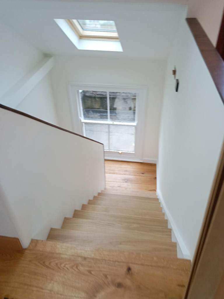 - Plasterboard partitions, skirting, wood floor, and tiling