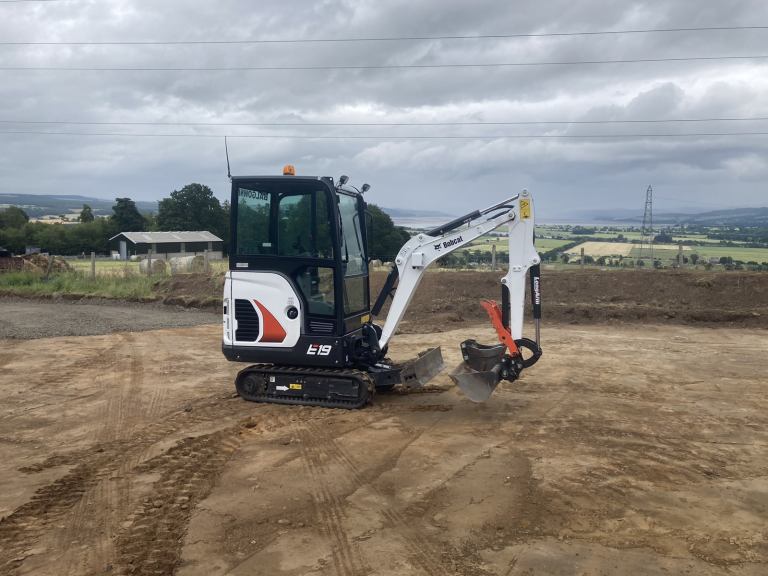 Mini digger with driver hire. Inverness and surrounding areas. Minimum 1 day hire. Drainage , footins pipe work. Gardens levelled, tree stumps dug