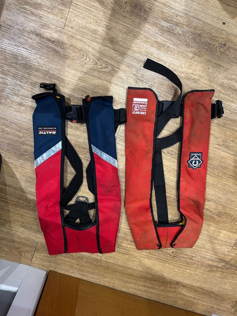 For sale are 2 Crewfit 150N life jackets which have been worn twice.
