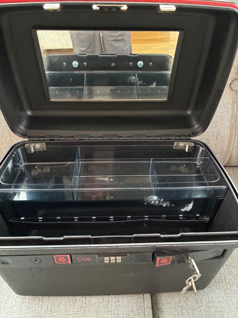 Black in colour. Is lockable with code and key