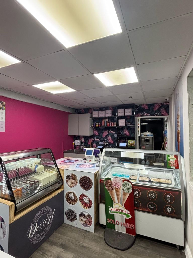 Includes all the equipment and fixtures and fittings worth over £20k - waffle machine, blender, soft whippy ice cream machine, ice cream freezer, cake fridge, EPOS system, microwave, oven, cctv, telephone, internet, stock.