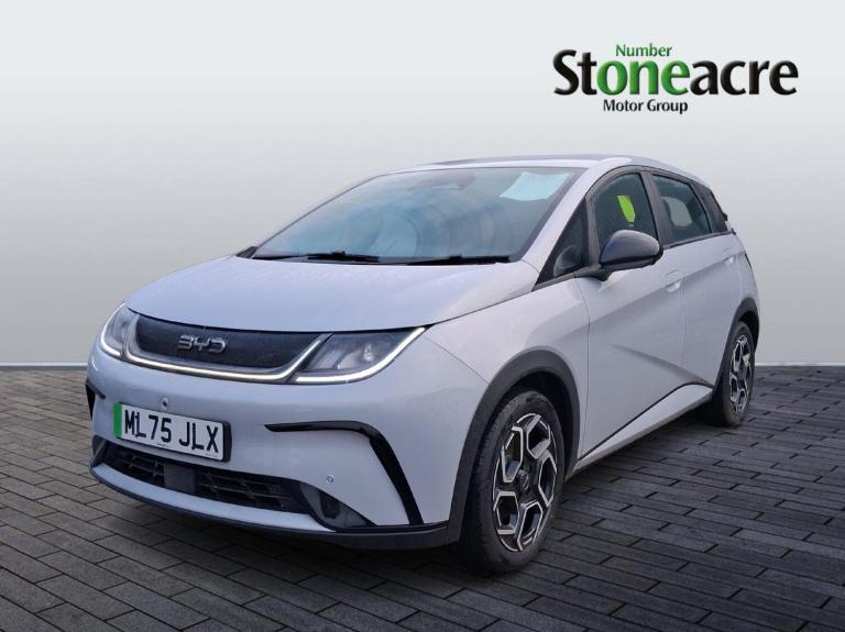 With only 10 miles on the clock, this 2025 BYD Dolphin Comfort presents an exceptional opportunity to own a virtually new electric vehicle. This single owner example boasts a substantial 60 kWh battery, offering a maximum range of 265 miles on a full charge. For convenience, it can reach 80% charge in just 41 minutes at a public charging station. The Comfort trim level includes desirable features such as heated front seats for those colder journeys, and a comprehensive parking assistance system with both front and rear parking sensors, complemented by blind spot detection for added safety. Keyless entry and start further enhance the user experience.The BYD Dolphin Comfort stands out with its impressive acceleration, achieving 0 to 62 miles per hour in a swift 7.0 seconds, demonstrating its responsive electric performance. This acceleration is quicker than many other vehicles in its class. Furthermore, the generous boot space provides ample room for shopping, luggage, or any other items you need to transport, making it a practical choice for everyday use and longer trips alike.