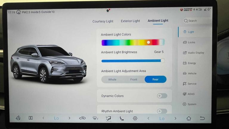 11kW On-board Charger - OBC, 12.3in TFT Full LCD Instrument Panel, 12V Power Output, 15.6in Electric Rotary Touchscreen, 2x Front USB Port - 1x 18W Type C and 1x 60W Type C, 2x Rear USB Port - 2x 18W Type C, 360 degree Camera, Adaptive Cruise Control - ACC and Intelligent Cruise Control - ICC, Apple Carplay - Android Auto, Blind Spot Detection - BSD, Cloud Service - BYD App, DAB Radio and FM Radio, Door Opening Warning - DOW, Driving Modes - Eco - Normal - Sport - Snow, Emergency Call, Exterior Mirror Footlight, Follow Me Home Headlights, Forward Collision Warning - FCW, Front Cross Traffic Alert - FCTA and Front Cross Traffic Brake - FCTB, Front and Rear - Parking Radars, Heads-Up Display - HUD, Heat Pump, High Beam Assist - HMA, Home Charging Cable - 3-Pin, Infinity Sound System - 10 Speakers, Intelligent Speed Limit Control - ISLC, Intelligent Voice Control - HI-BYD, LED Daytime Running Lights, LED Headlights - Automatic On - Off, LED Taillights, Lane Change Assist - LCA, Lane Departure Prevention - LDP, Lane Departure Warning - LDW, Mode 3 Type 2 Charging Cable - 3-phase, Onboard 4G Connectivity, Power Steering System, Predictive Collision Warning - PCW, Rear Collision Warning - RCW, Smartphone Wireless Charging - 2x 15W, Traffic Sign Recognition - TSR, Tyre Pressure Monitoring System - TPMS, Vehicle To Load Function - V2L, 19in Alloy Wheels - Bi-colour, 4x One-click Lift Window with Anti-pinch Function, Aluminium Roof Rail, Dynamic Welcome Lights, Electrically Folding-Heated and Adjustable Exterior Mirrors, Emergency Tow Hook, Front Windscreen - UV Protection - Thermal Insulation - Soundproofing, Panoramic Sunroof - Anti Pinch - Electrically Adjustable Sunshade, Rear Fog Lights, Rear Windows and Rear Windscreen - Privacy Glass, Tyre Repair Kit, 2x Smart Key, Anti-lock Brake System - ABS, Anti-Theft System, Auto-lock Sytem, Automatic Emergency Braking - AEB, Automatic Vehicle Hold - AVH, Brake Override System - BOS, Child Presence Detection - CPD, Comfort Stop - CST, Controller Deceleration Parking - CDP, Drivers Airbag, Electric Parking Brake System - EPB, Electronic Brake Distribution - EBD, Emergency Lane Keep Assist - ELKA, Front Centre Airbag, Front Passengers Airbag with Deactivation Switch, Front Seat Belts - Pre-Tensioned and Force Limiter, Front Side Airbags, Hill Decent Control - HDC, Hill Hold Control - HHC, Hydraulic Boost Brake - HBB, Hydraulic Brake Assistant - HBA, ISOFIX and i-Size - Front Passenger and Outer Rear Seats, Indirect