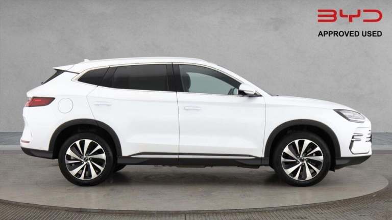 ..11kW On-board Charger - OBC, 12.3in TFT Full LCD Instrument Panel, 12V Power Output, 15.6in Electric Rotary Touchscreen, 19in Alloy Wheels - Bi-colour, 2x Front USB Port - 1x 18W Type C and 1x 60W Type C, 2x Rear USB Port - 2x 18W Type C, 2x Smart Key, 360 Degree Camera, 4x One-click Lift Window with Anti-pinch Function, Adaptive Cruise Control - ACC and Intelligent Cruise Control - ICC, Aluminium Roof Rail, Ambient Lighting - Multi-colour with Rhythm-reactive, Anti-lock Brake System - ABS, Anti-theft System, Apple Carplay - Android Auto, Auto-dimming Rear View Mirror, Auto-lock Sytem, Automatic Emergency Braking - AEB, Automatic Vehicle Hold - AVH, Blind Spot Detection - BSD, Boot Parcel Shelf, Brake Override System - BOS, Child Presence Detection - CPD, Cloud Service - BYD App, Comfort Stop - CST, Controller Deceleration Parking - CDP, DAB Radio and FM Radio, Door Opening Warning - DOW, Driver Seat - Ventilated - Heated with Memorized Adjustment, Driver Seat with 8-Way - Electrical Adjustable with Position Memory, Driver Seat with Integrated Headrest, Drivers Airbag, Driving Modes - Eco - Normal - Sport - Snow, Dynamic Welcome Lights, Electric Parking Brake System - EPB, Electric Tailgate, Electrically Folding-Heated and Adjustable Exterior Mirrors, Electronic Brake Distribution - EBD, Emergency Call, Emergency Lane Keep Assist - ELKA, Emergency Tow Hook, Exterior Mirror Footlight, Follow Me Home Headlights, Forward Collision Warning - FCW, Front Centre Airbag, Front Centre Armrest - 2 Cupholders, Front Cross Traffic Alert - FCTA and Front Cross Traffic Brake - FCTB, Front LED Door Lights, Front LED Reading Lights, Front Passenger Seat - Ventilated and Heated, Front Passenger Seat with 4-Way Electric Adjustment, Front Passenger Seat with Integrated Headrest, Front Passengers Airbag with Deactivation Switch, Front Rain Sensor Wiper, Front Seat Belts - Pre-Tensioned and Force Limiter, Front Seat Footlights, Front Seat Sun Visors with Illuminated Mirror, Front Side Airbags, Front Windscreen - UV Protection - Thermal Insulation - Soundproofing, Front and Rear - Parking Radars, Heads-Up Display - HUD, Heat Pump, High Beam Assist - HMA, Hill Decent Control - HDC, Hill Hold Control - HHC, Home Charging Cable - 3-Pin, Hydraulic Boost Brake - HBB, Hydraulic Brake Assistant - HBA, ISOFIX and i-Size - Front Passenger and Outer Rear Seats, Indirect Driver Fatigue Management - DFM, Infinity Sound System - 10 Speakers, Intelligent Speed Limit Control - ISLC,