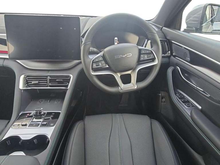 12.3in TFT Full LCD Instrument Panel, 12V Power Output, 15.6in Electric Rotary Touchscreen, 2x Front USB Port - 1x 18W Type C and 1x 60W Type C, 2x Rear USB Port - 2x 18W Type C, Apple Carplay - Android Auto, Cloud Service - BYD App, DAB Radio and FM Radio, Emergency Call, Infinity Sound System - 10 Speakers, Onboard 4G Connectivity, Smartphone Wireless Charging - 2x 15W, 360 Degree Camera, Adaptive Cruise Control - ACC and Intelligent Cruise Control - ICC, Blind Spot Detection - BSD, Door Opening Warning - DOW, Driving Modes - Eco - Normal - Sport - Snow - Sand - Muddy, Forward Collision Warning - FCW, Front Cross Traffic Alert - FCTA and Front Cross Traffic Brake - FCTB, Front and Rear - Parking Radars, Heads-Up Display - HUD, Intelligent Voice Control - HI-BYD, Lane Change Assist - LCA, Lane Departure Prevention - LDP, Lane Departure Warning - LDW, Predictive Collision Warning - PCW, Rear Collision Warning - RCW, Traffic Sign Recognition - TSR, Tyre Pressure Monitoring System - TPMS, 19in Alloy Wheels - Bi-colour, 4x One-click Lift Window with Anti-pinch Function, Aluminium Roof Rail, Dynamic Welcome Lights, Electrically Folding-Heated and Adjustable Exterior Mirrors, Emergency Tow Hook, Front Windscreen - UV Protection - Thermal Insulation - Soundproofing, Panoramic Sunroof - Anti Pinch - Electrically Adjustable Sunshade, Rear Fog Lights, Rear Windows and Rear Windscreen - Privacy Glass, Tyre Repair Kit, Exterior Mirror Footlight, Follow Me Home Headlights, High Beam Assist