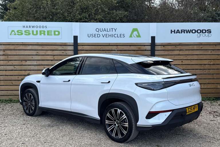 SATELLITE NAVIGATION, PANORAMIC SUNROOF WITH ELECTRICALLY ADJUSTABLE BLIND, HEADS-UP DISPLAY, ELECTRIC TAILGATE WITH KICK TO OPEN FUNCTION, DUAL ZONE CLIMATE CONTROL, PM2.5 PARTICULATE FILTER, NEGATIVE ION GENERATOR, HEAT PUMP, 10.25” DIGITAL INSTRUMENT CLUSTER, AUTOMATIC LED HEADLIGHTS WITH HIGH BEAM ASSIST, 360 CAMERA, FRONT AND REAR PARKING SENSORS, ADAPTIVE CRUISE CONTROL, SPEED LIMITER, ELECTRICALLY ADJUSTABLE FOLDING HEATED DOOR MIRRORS WITH POSITION MEMORY AND PUDDLE LIGHTS, DYNAUDIO SOUND SYSTEM, DAB RADIO, APPLE CARPLAY (R), ANDROID AUTO (R), VOICE CONTROL, BLUETOOTH, USB CONNECTIVITY, 15.6” ROTATABLE INFOTAINMENT TOUCHSCREEN, WIRELESS PHONE CHARGER, LEATHER MULTI-FUNCTION HEATED STEERING WHEEL, FINISHED IN POLAR WHITE, LEATHER UPHOLSTERY, ELECTRICALLY ADJUSTABLE HEATED AND VENTILATED FRONT SEATS, DRIVERS SEAT POSITION MEMORY, HEATED REAR SEATS, MULTI-COLOUR AMBIENT CABIN LIGHTING, REAR PRIVACY GLASS, 20” BI-COLOUR ALLOY WHEELS, RAIN SENSING WINDSCREEN WIPERS, ISOFIX, ELECTRONIC HANDBRAKE WITH HILL HOLD, KEYLESS ENTRY, PUSH BUTTON START, TYRE PRESSURE MONITORING SYSTEM, TRAFFIC SIGN RECOGNITION, FRONT & REAR COLLISION WARNING, FRONT AND REAR CROSS TRAFFIC ALERT AND BRAKING, BLIND SPOT DETECTION, DRIVER FATIGUE MONITOR, LANE CENTRING CONTROL, AWD ALL WHEEL DRIVE, AUTOMATIC GEARBOX, 91.3KWH BYD BLADE BATTERYThis car comes with the remainder of the manufacturer's warranty (details on request), a thorough history check, comprehensive service history and has been prepared by our manufacturer trained technicians. We are proud to be part of the Harwoods group, a family run business established in 1931. If this isn't the car for you, our wider selection of BYD stock includes Active, Boost, Comfort, Design and Excellence specifications including 360 Cameras, panoramic sunroofs, heat pumps, adaptive cruise control, AWD. Other colour options include Black, Blue, Silver, White, Red, Green and Grey as well as Tahiti & Black interiors.