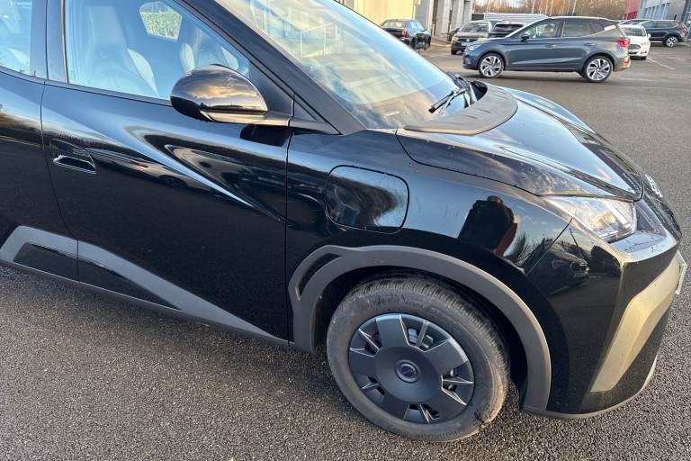 Check out this Brand New BYD Dolphin Surf! This Active model boasts a 30kWh battery, which can offer a range of up to 137-miles, giving you plenty of charge for city driving! Charging the Dolphin Surf is super quick, with the ability to rapid charge at 65kW, which can offer a 10-80% charge in as little as 30 minutes! Charging at home on an 11kW charger will take just 3.5 hours, and can be scheduled to take place at off-peak times! This BYD Dolphin Surf Active comes finished in the sleek Polar Night Black metallic paint, which looks superb paired with the 15in steel wheels. Inside, youll find plush vegan leather upholstery, with manual seat adjustment provided. Youll find two seats in the rear, both offering Isofix points! The Dolphin Surf offers a good amount of boot space, along with the ability to fold rear seats down. The BYD is of course packed with tech, with a 10.1in rotating touchscreen taking centre stage on the dashboard. This system offers access to a whole host of media features, including DAB radio, Bluetooth interface and satellite navigation! The system also provides access to the climate control! The Dolphin Surf boasts some useful safety features too, including rear parking sensors and a rear-view camera to make parking super easy! The car is also equipped with adaptive cruise control, which comes in handy for motorway drives. This BYD also benefits from automatic halogen headlights with LED daytime running lights, offering excellent visibility. This v...