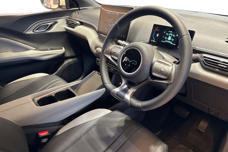 Introducing the brand new BYD Dolphin Surf 30kWh Active Auto 5dr combines fresh styling with efficient electric driving. Finished in Apricity White and powered by a compact 30kWh electric motor, it offers WLTP range of up to 137miles and DC fast charging in 30 minutes making it ideal for both urban journeys and longer commutes. The exterior features halogen headlights with LED daytime running lights. At the rear, LED taillights give the Dolphin a distinctive look, while privacy glass ensures rear passengers enjoy both comfort and discretion. The car rides on durable 15-inch steel wheels, designed to keep running costs down while providing a comfortable drive. Inside, the Dolphin offers a modern cabin with a 7-inch digital driver display and a vegan leather multifunction steering wheel. Manually adjustable seats ensure a good driving position, and the rear seats are fitted with ISOFIX and i-Size points for family convenience. The infotainment system centres on a 10.1-inch rotatable touchscreen, equipped with DAB radio, Spotify streaming, Bluetooth, and Apple CarPlay/Android Auto for seamless connectivity. Built-in navigation makes every journey easier, while a reversing camera and rear sensors ensure confident parking. Intelligent features like the BYD Assistant voice control and selectable driving modes add convenience and personalisation. Experience the future of sustainable driving at BYD Crewe. Here, you can discover the range of BYD models, both brand new and pre...