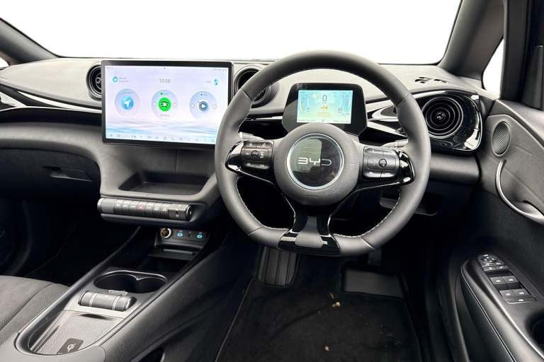BYD Stoke are proud to present the BYD Dolphin, with its 60.48kWh, this vehicle offers a modern and distinctive style that reflects the personality of 100% electric and sustainable mobility, perfect for those who want a quiet, clean, and comfortable ride without sacrificing character. A rapid charge with the vehicle can get you from 10-80% in about 40-43 minutes using a 100 kW charger, while a full AC charge from 0-100% can take around 6 hours and 12 minutes with a 22 kW charger The BYD Dolphins LED headlights immediately catch the eye thanks to their fluid design that creates a modern and dynamic visual effect, enhancing the car even when stationary. The light signature makes the model immediately recognizable, underlining its innovative and technological character. The headlights are connected by an LED light strip that runs along the entire front, while the rear lights feature a distinctive, technological design. Inside, you will find the infotainment system, which is touchscreen, which integrates intelligent voice control and a series of digital services, allowing for distraction-free driving and adding a touch of entertainment to every journey. The BYD Dolphin presents an amazing opportunity to all drivers, especially ones wanting to start their electric vehicle journey.