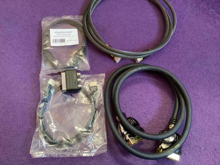 Assortment of various cable plugs / sky cables/ ear plug for phone....tablot /cay phone holders ect great BARGAIN at £ 10
